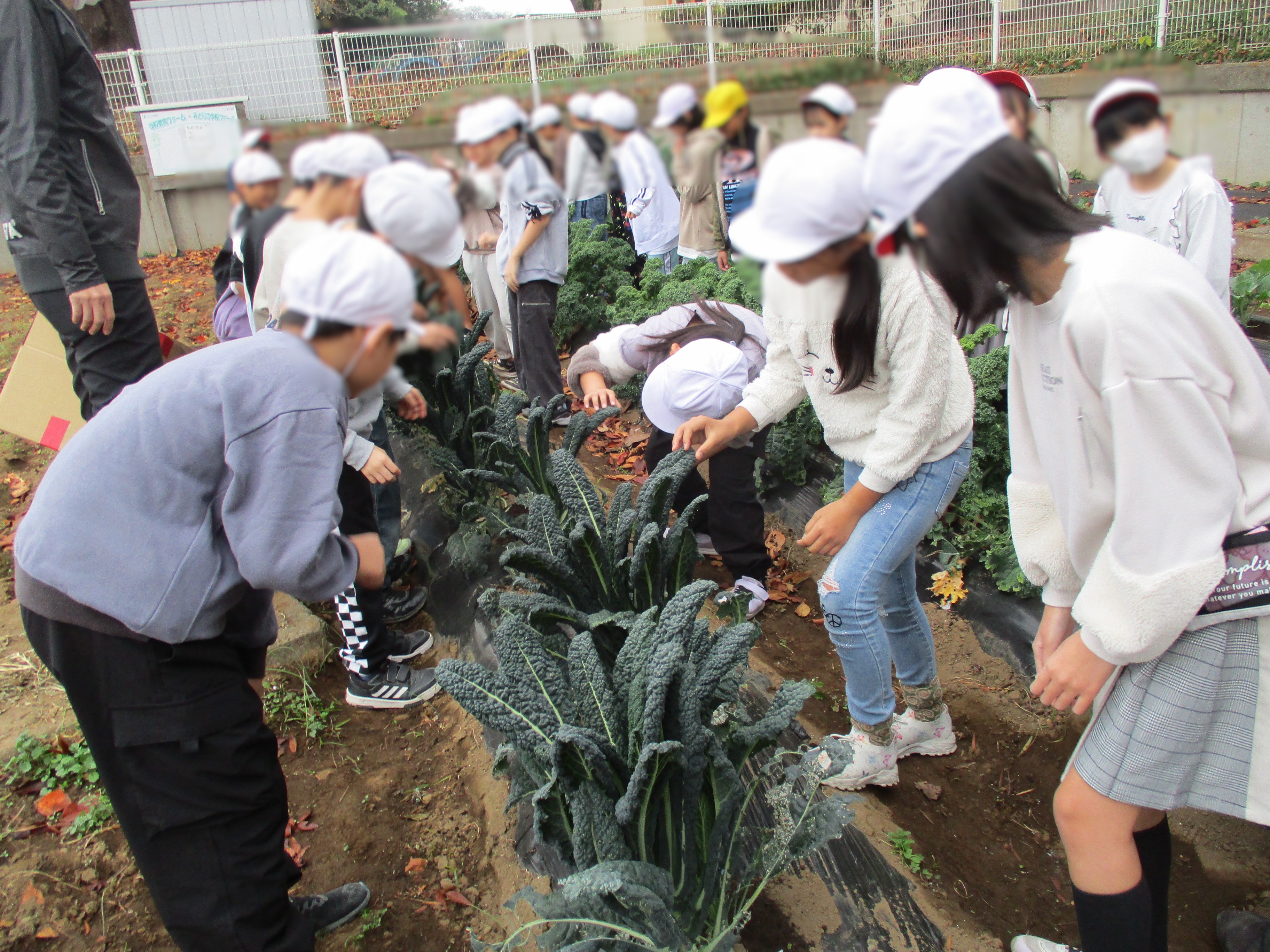 12月4日(木)は、3年生が、学校畑で育てているヨーロッパ野菜の収穫をしました。